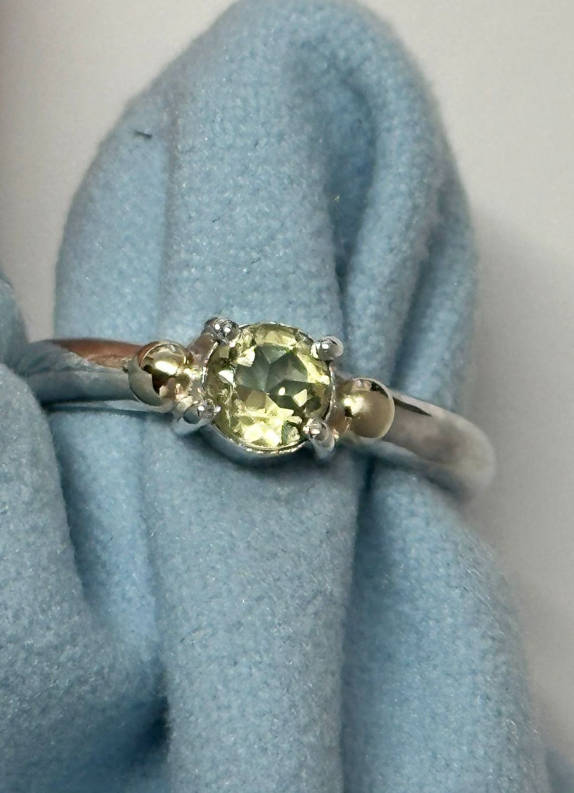 Lemon Topaz 4 Claw Ring Add a sparkle of sunlight to your look with this Lemon Topaz ring, set in polished sterling silver. The round lemon topaz shimmers with a soft golden hue enhanced with 9 CT gold granulation, catching light with effortless brilliance. Its minimalist four prong setting lets the gemstone take centre stage, while the smooth band provides a comfortable, timeless fit. Perfect for everyday elegance or as a subtle statement piece, this ring brings fresh, uplifting glow to any style. This ring can also be made using a different metal or stone, please use the contact us page with any alterations you would like to make. • Gemstone: Genuine AAA lemon topaz • Cut: Brilliant Cut • Metal: Stirling Silver with Gold Granulation • Setting: 4 prong solitaire • Sizes: K – V UK You will be emailed the dispatch date for you order and consequently, you will be emailed delivery details. If your item is in stock, we will wend send it out by the second business day from receipt of your order. If your item is not in stock or you want to make changes to the metal or stone used, we will be hand making it from scratch, which can take from 11 to 27 working days. Some rare products can take up to 6 weeks. Bespoke jewellery orders, where we are custom making you, a one-off piece can take longer to make, depending upon what you have requested, We say to allow 3-6 weeks and you will be provided with a production timescale when you receive your quote. To find out if an item is in stock or for urgent orders, please use the contact us page to get in touch.